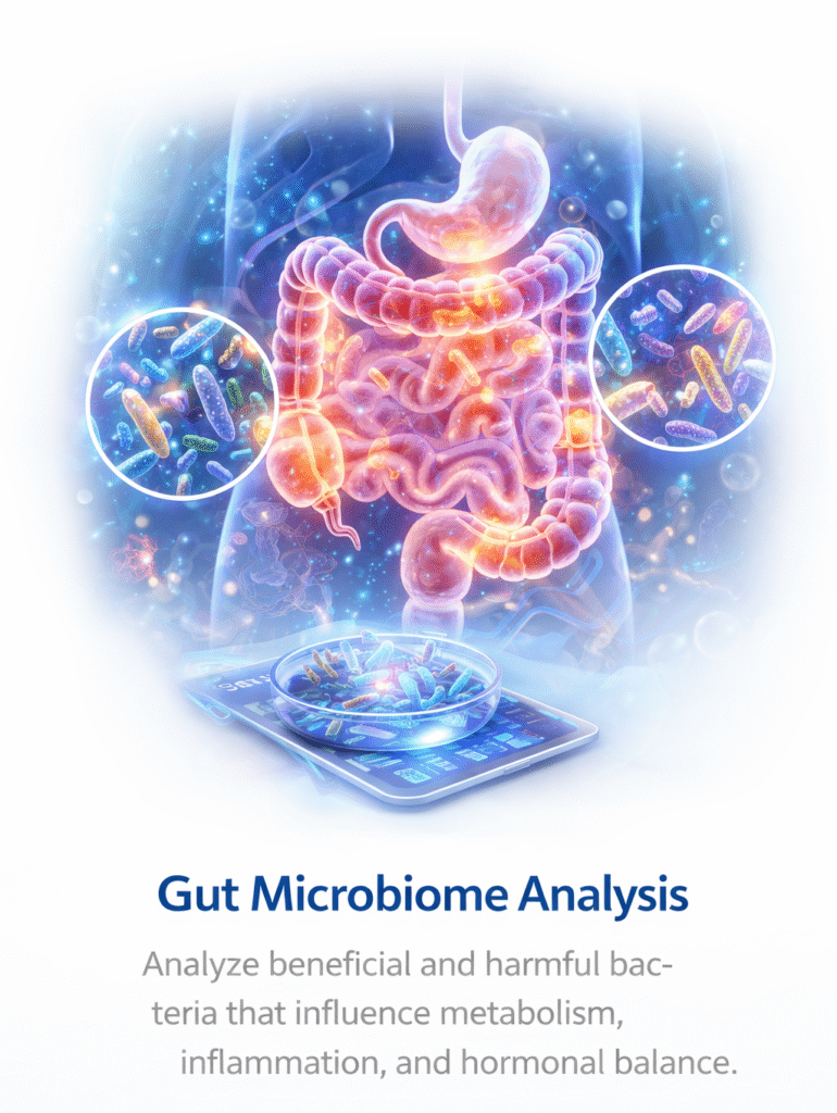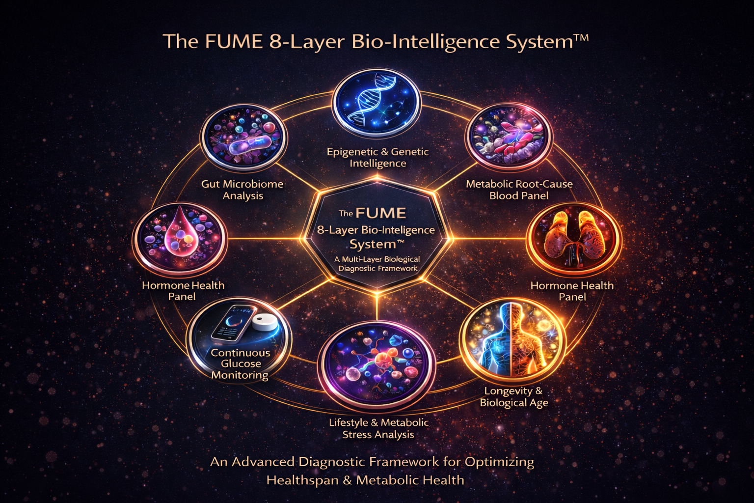 An integrated diagnostic framework designed to analyze the biological systems influencing metabolic health and long-term vitality.