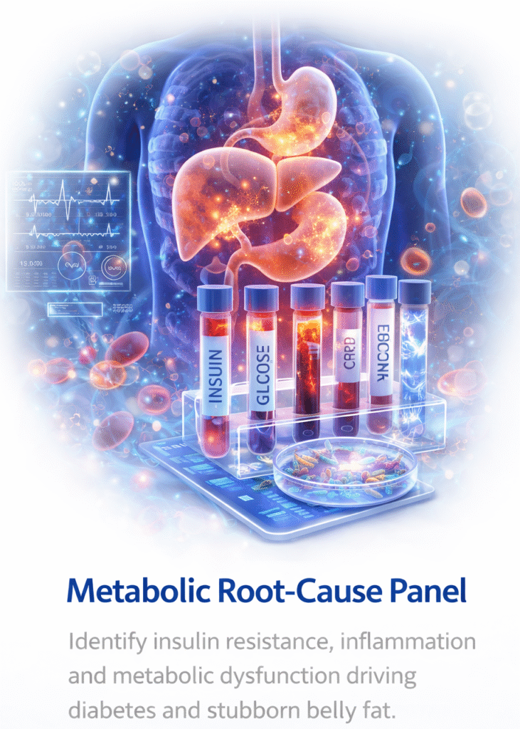 Our metabolic panel focuses on deeper markers that reveal insulin resistance, metabolic stress and inflammatory burden.